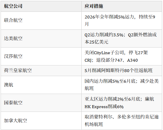美国航司受冲击最为直接。联合航空全年削减5%运力,减量持续至9月;达美航空本季度额外承担25亿美元燃油成本,通过提价和砍削约3.5%运力来消化。达美CEO Ed Bastian表示: